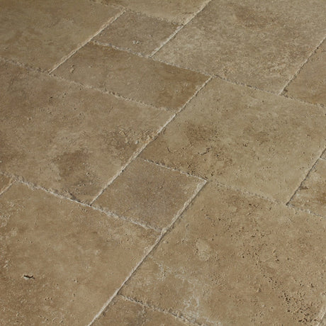 Antique Pattern Travertine Flooring Tiles — Mina Rustic / Brushed, Chiseled, and Partially Filled