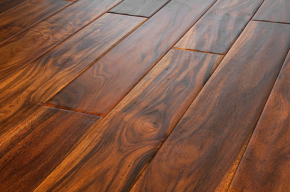 Our Tropical Handscraped Acacia Solid Hardwood Flooring offers unique elegance and eye-catching beauty for your interior design project. Made from notably durable small leaf Acacia wood, this premiere grade solid hardwood flooring provides stunning shade variations and quality you can count on.