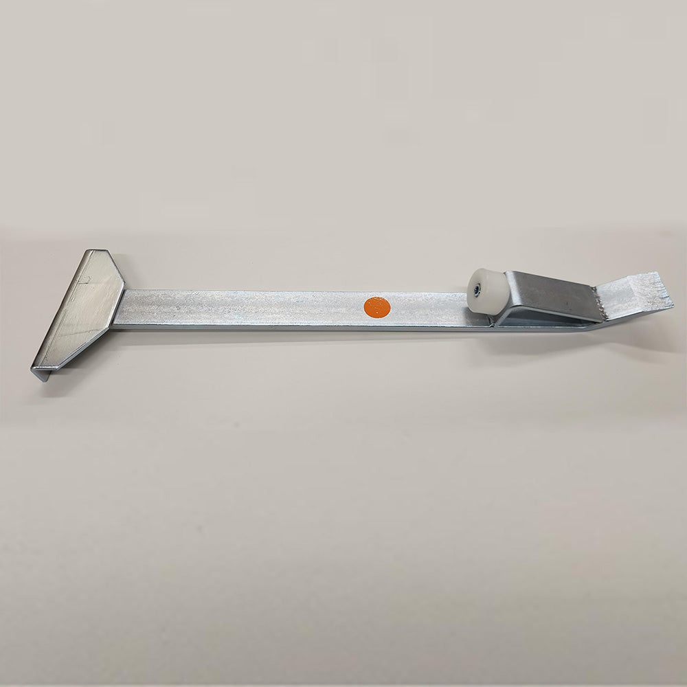 This steel pull bar is designed for heavy-duty hammering to securely pull flooring planks together. It features a robust, welded, boxed "knuckle-shaped" hammering head and a 3/16" thick, 3" wide body engineered to resist bending during use. At 16 ½" in overall length, it provides 14 ½" of effective working space near walls. Felt pads on the underside help prevent scratching or marking the surface of the flooring. Net weight: 3 ¼ lbs.